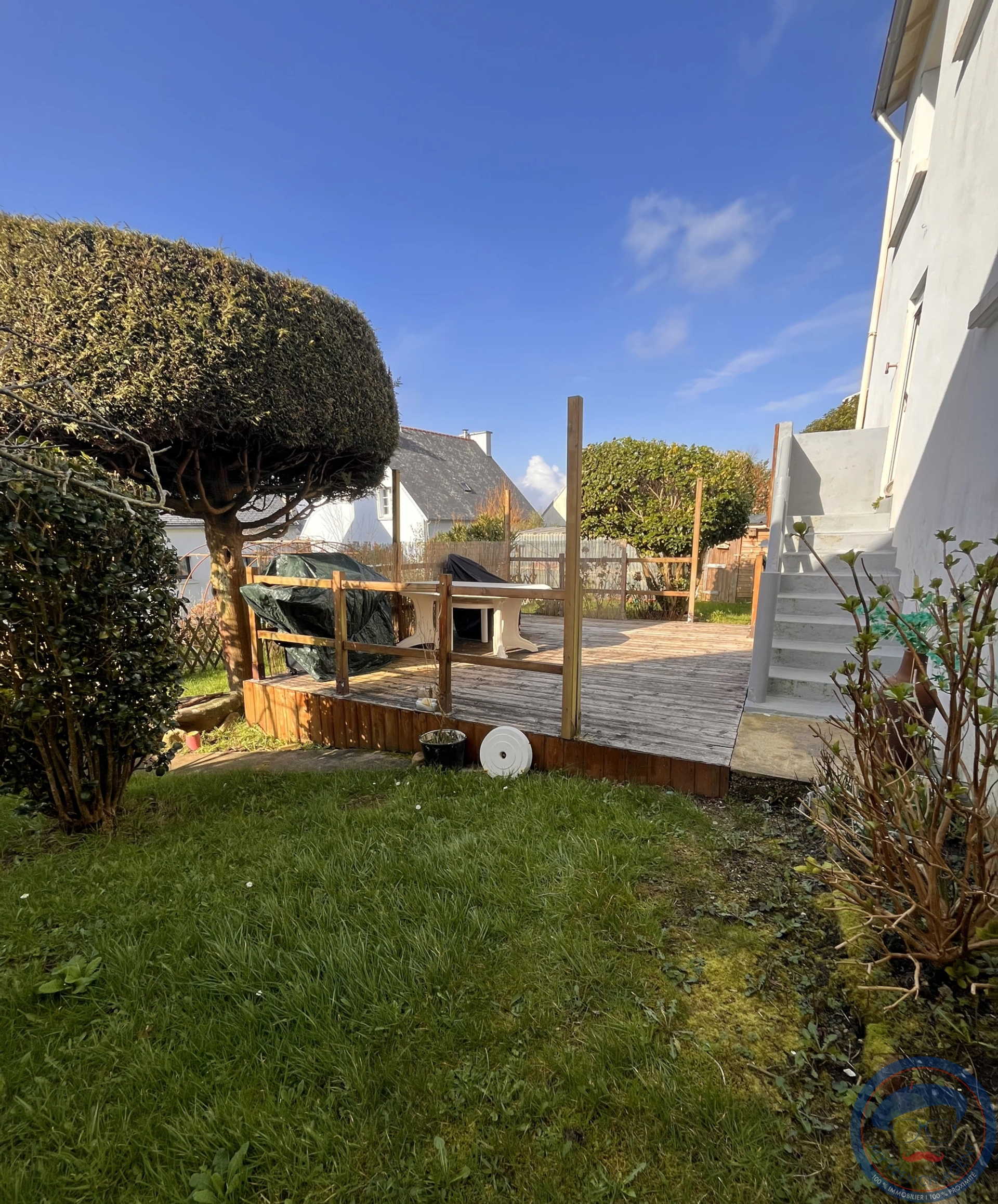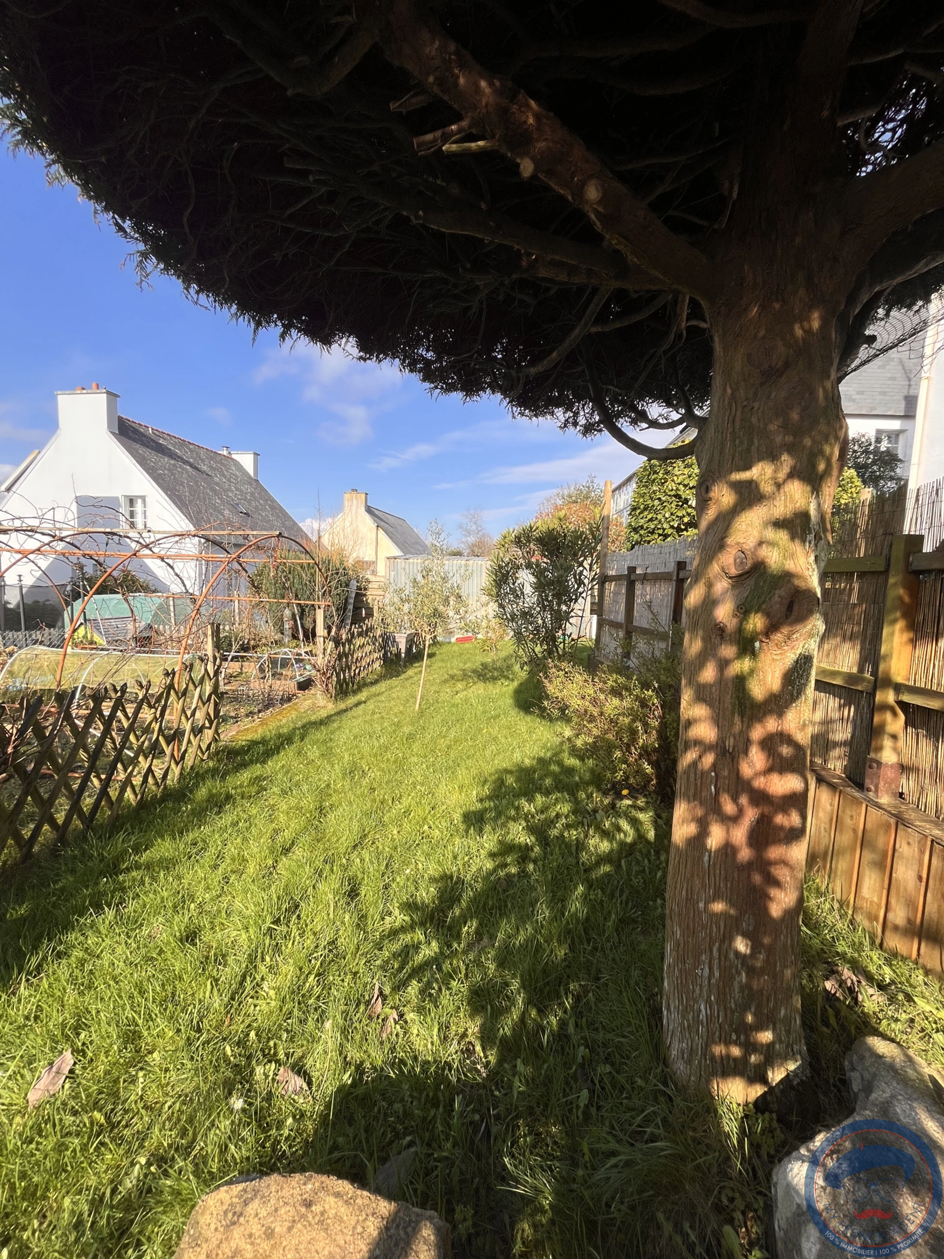 Le Jardin est arboré avec 2 abris en bois, ideal pour rangement.