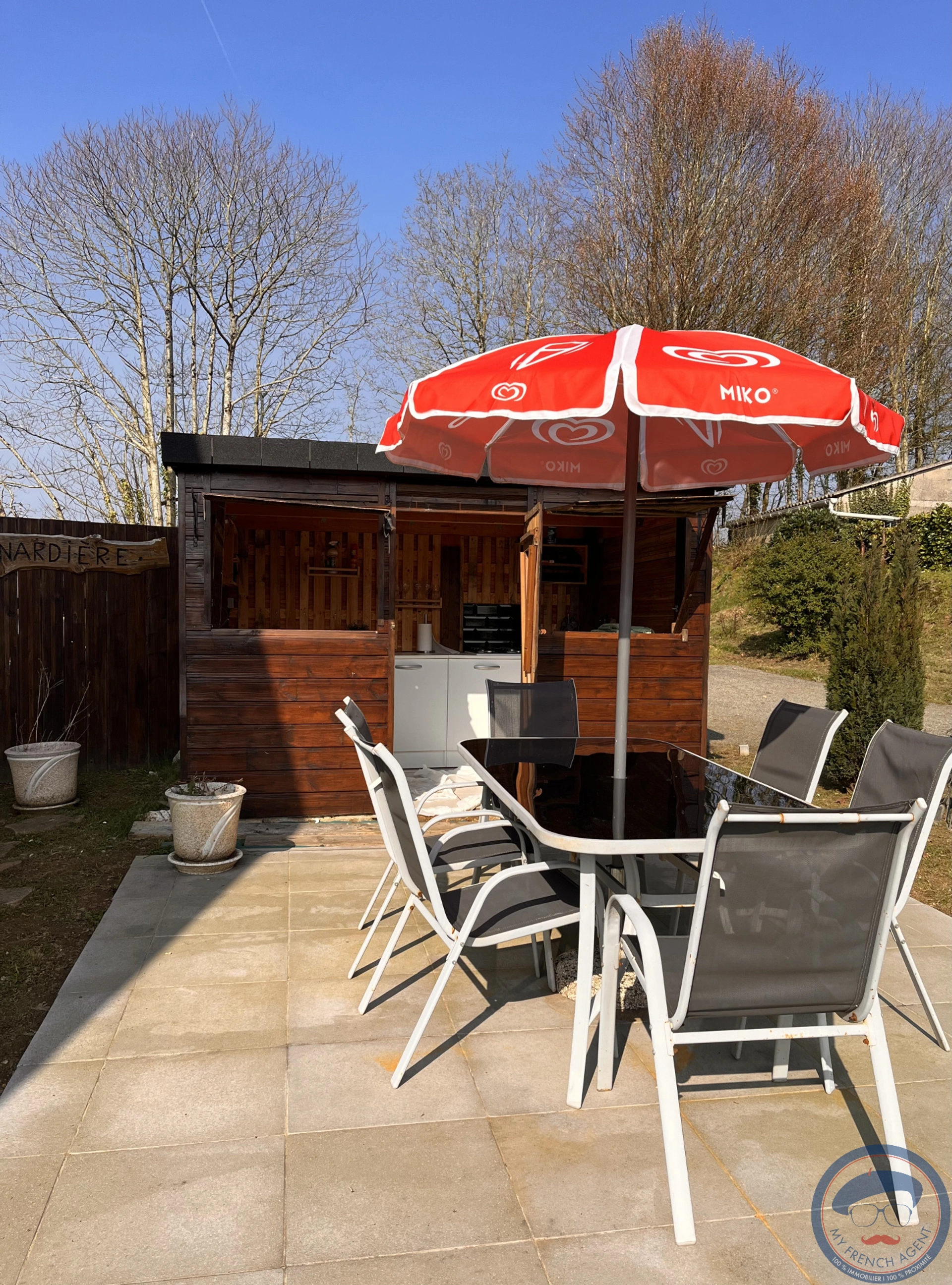 Dès l'extérieur, vous profitez d'un jardin arboré et soigneusement aménagé avec terrasse et cuisine extérieure idéale pour les repas en famille.